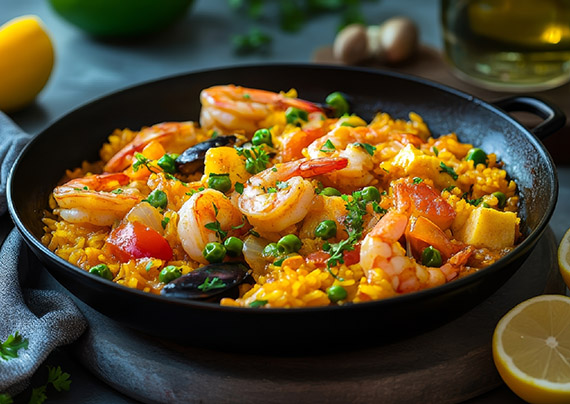 Riesengarnelen in Weißweinsauce mit Reis und Salat